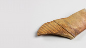 Grapen sind kugelartige Töpfe mit drei Standfüßen und gehörten zum Kochgeschirr des Mittelalters und der frühen Neuzeit. Um Speisen zu garen, wurden sie direkt in der Glut der Feuerstelle platziert. Diese Bodenscherbe eines Grapens aus weichem, stark verwittertem Ton wurde bei der „Bremer Kogge“ gefunden. Sie stammt jedoch von einem frühneuzeitlichen Gefäß.