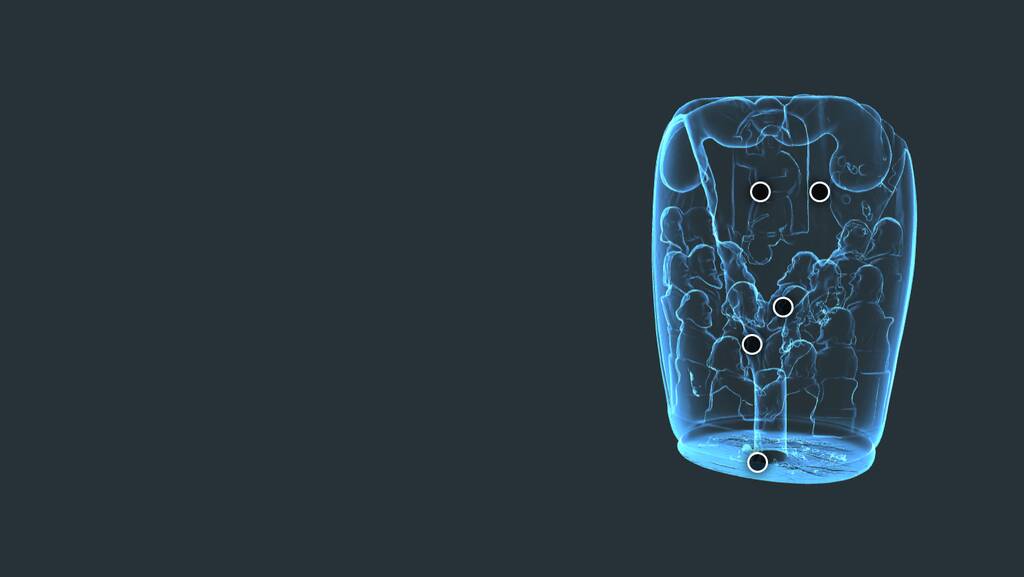 Diese Figurenszene ist aus dem Unterkieferzahn eines jungen Pottwalbullen geschnitzt worden. Dabei liegt die Zahnwurzel oben und die Zahnkrone unten. Ursprünglich könnte die Schnitzerei als Knauf eines Zeremonialstabs oder Möbeldekor zu einem Stadtrat, einer Gilde oder einer Bruderschaft gehört haben.